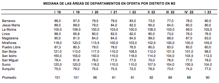 MEDIANA DE LAS ÁREAS DE DEPARTAMENTOS EN OFERTA POR DISTRITO EN M2